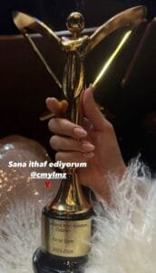 Mela Bedel, 50. Pantene Altın Kelebek Ödül Töreni kapsamında yılın en iyi şarkısı ödülünü aldı. Aldığı ödülü sosyal medya hesabından paylaşan Bedel, sana ithaf ediyorum diyerek Cem Yılmaz‘ı da paylaşımına ekledi.