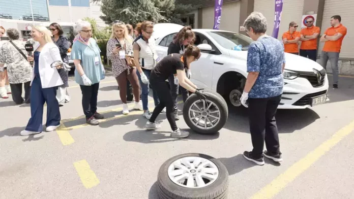 ” YOLDA KALMA KORKUMUZ BİTTİ” – Kursiyer hanımefendiler trafikte yaşadıklarını ve niçin kursa katıldıklarını şu şekildeki anlattı: Nebahat Ömeroğlu: “1984’ten beri vasıta kullanıyorum. Bugüne kadar asla lastik değiştirmedim. Yolda kaldığımda yardımsever bir camia olduğumuz için derhal koşuyorlar. Bir gün yolda kaldığımda, sağ olsun polis memuru ittirdi arabamı. Yapılabilir bulunduğunu gördüm.” Lale Çokgezer: “Gezmeyi ve otomobil kullanmayı oldukca seviyorum. 43 yaşındayım, 18 yaşından beri kullanıyorum. Ama şimdiye kadar lastik vakasını asla bilmiyordum. Yolda kaldığımda ya eşimi çağırırdım veya yoldan geçenlere ‘Yardım eder misiniz?’ derdim. Öğrenmek, hiç kimseye muhtaç olmamak oldukca güzel.” Behice Gelmez: “İlk otomobil kullanmak istediğimde, eşim ’40’ından sonrasında kullanamazsın, öğrenemezsin” demişti. Ama sebat ettim öğrendim. Şimdi, ‘Lastik değiştireceğim’ deyince, güldü geçti. Çünkü başaracağımdan emin.”