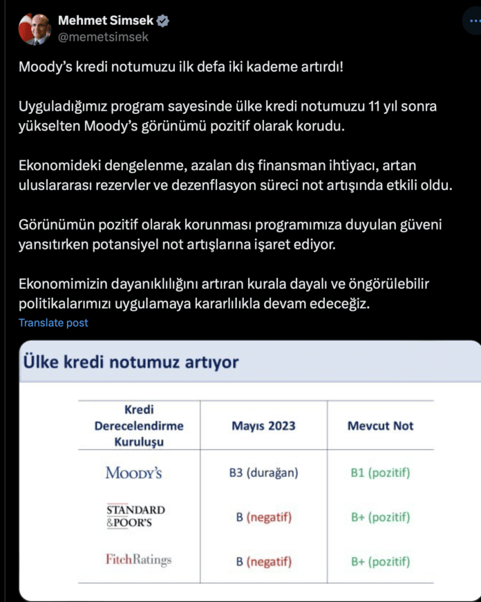 Moody’s kredi notumuzu ilk defa iki kademe artırdı!